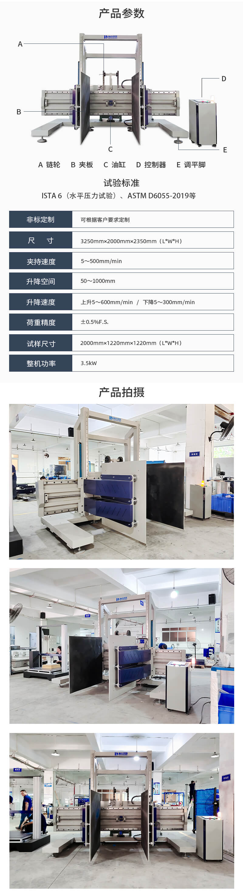 模擬夾抱試驗機是專業用于廚具、家私、家電、玩具等成品包裝件抗夾持強度測試,尤其適用于美國西爾斯SEARS所要求之包裝件抗夾持強度測試。