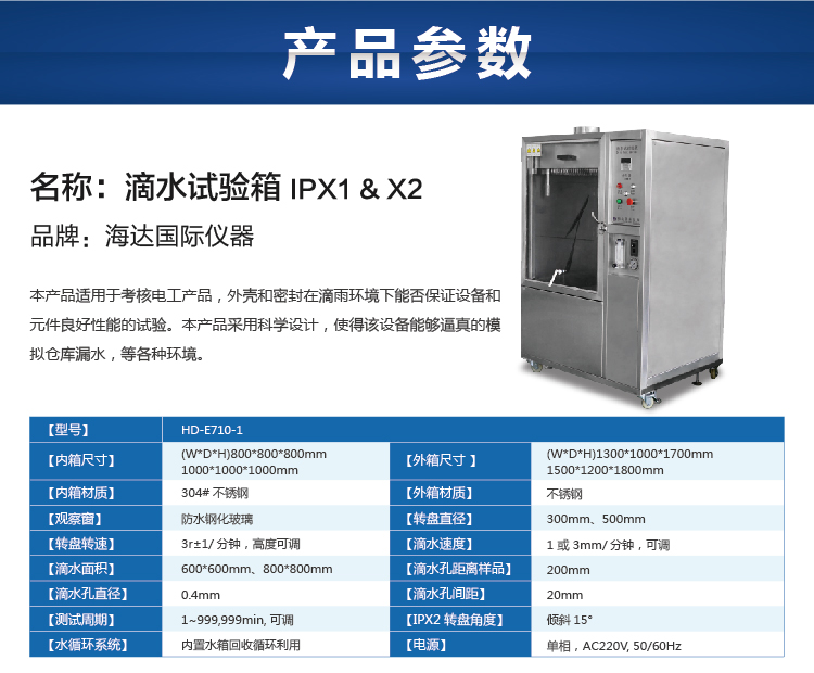 滴水試驗箱IPX1-2適用于測試產(chǎn)品在淋雨的氣候環(huán)境下的貯存,運輸和使用時的性能試驗,主要用于對電工電子產(chǎn)品,燈具,電柜,電器元件,汽車,摩托車及其零部件等產(chǎn)品在模擬淋雨的氣候條件下,對產(chǎn)品的物理以及其它相關(guān)性能進行測試。